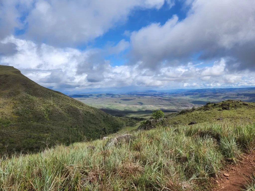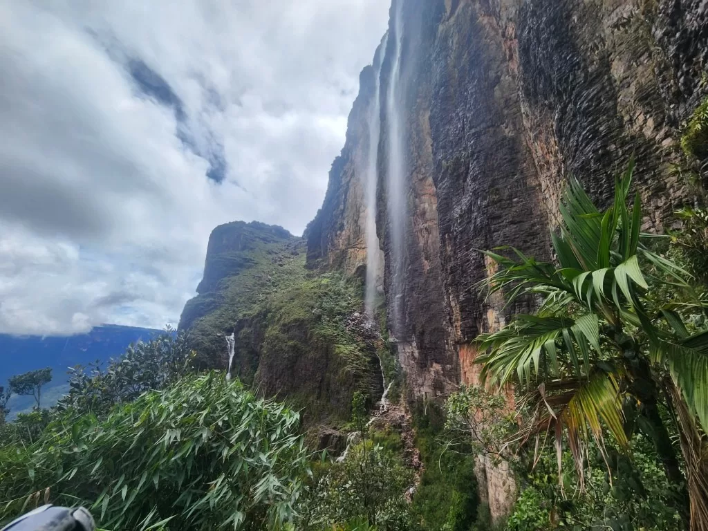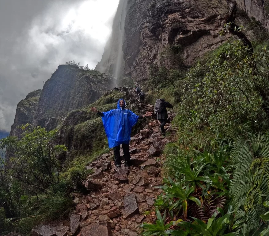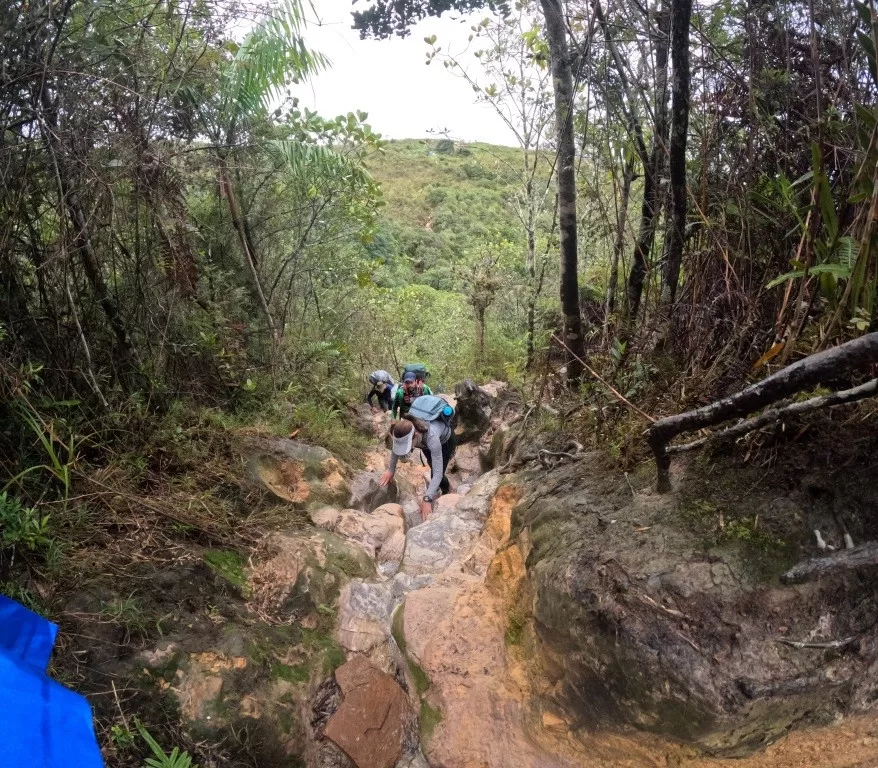 O ganho de altitude é gradual nos primeiros dias, com subidas de 200 a 400 metros diários pela savana até o acampamento base (1.870 m). No entanto, o Dia 3 é o mais exigente: são 800 metros de elevação em apenas 6 a 8 km, no trecho conhecido como Passo das Lágrimas e La Rampa. Ali, o esforço inclui escalaminhadas — apoiando-se em raízes e rochas molhadas por cachoeiras — e exposição a paredões verticais que podem causar vertigem.