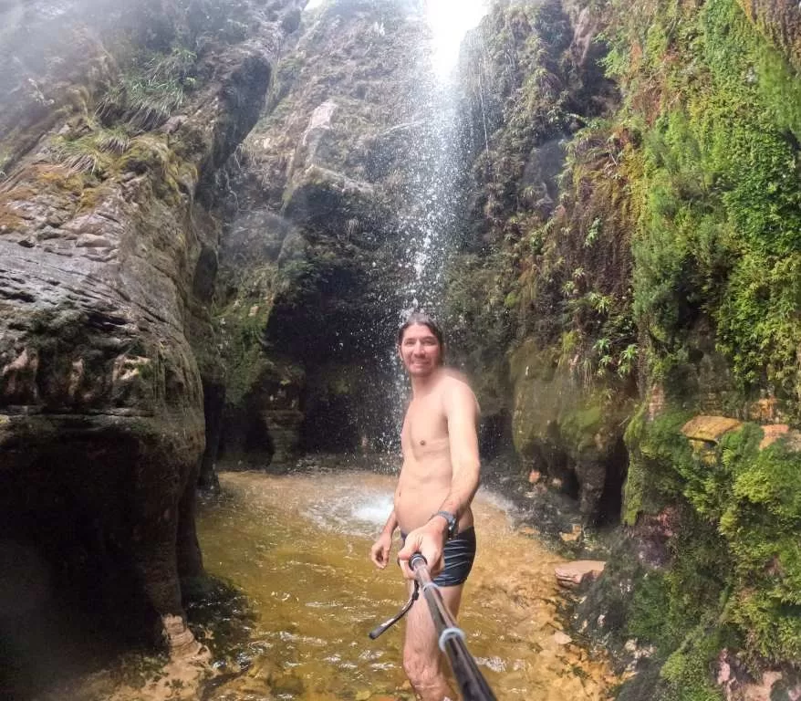 Por volta das 11h, alcançamos a Cachoeira da Capelinha, um lugar maravilhoso que nos convidou a trocar de roupa e nos refrescar em suas águas. Quando pensei que nada poderia superar sua beleza, o guia nos revelou um lugar escondido: a incrível Cachoeira da Catedral.