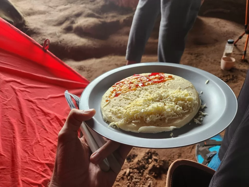 Após nos prepararmos, tomamos um café da manhã delicioso com panquecas recheadas de queijo ou cobertas com calda de caramelo ou morango. Enquanto isso, conversamos com o guia para alinhar os detalhes do dia. Por volta das 7h30, já estávamos prontos para a jornada.