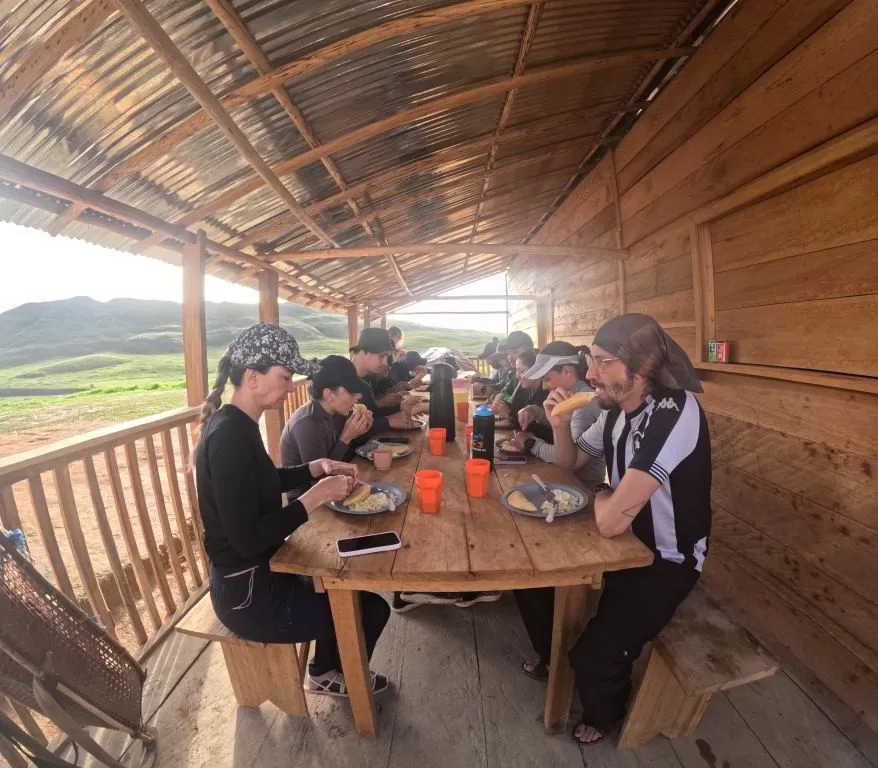 Lá, almoçamos uma refeição simples, mas deliciosa: arroz, feijão, repolho, batata e frango. Foi nesse momento que recebemos uma surpresa emocionante da agência: uma medalha simbólica para cada um de nós, representando a superação desse grande desafio. Durante a tarde, tivemos um tempo para explorar a feirinha de artesanato local. Aproveitamos para comprar lembrancinhas e trocar nossas últimas conversas com os moradores da região, o que tornou o momento ainda mais especial.