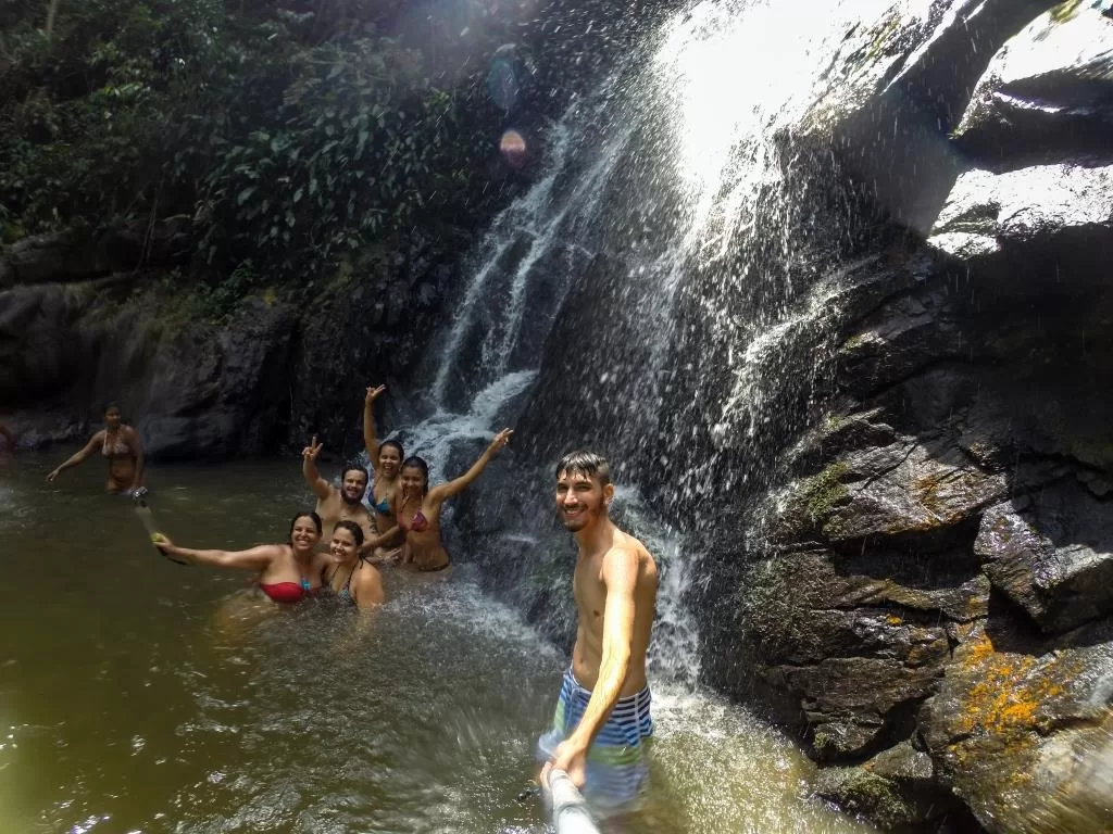Depois de aproximadamente 35 minutos desde o início da trilha, vão acabar os trechos de subida e agora basta seguir o caminho ouvindo a queda d’água e se preparando para tomar aquele banho de água gelada.