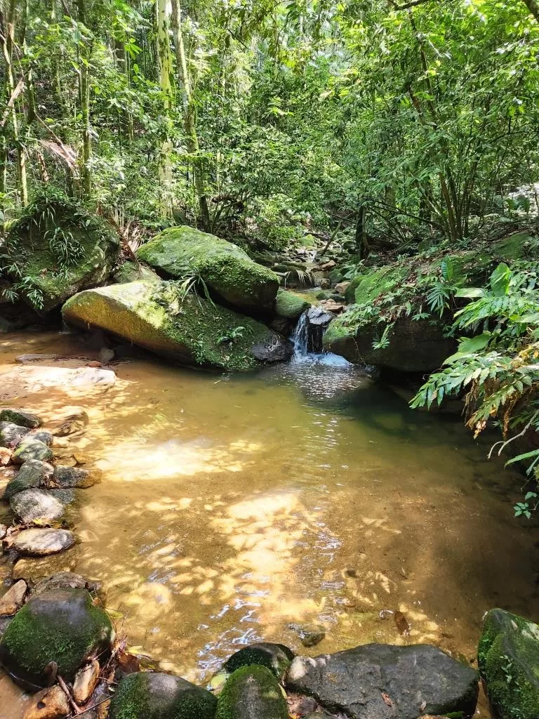 Para chegar até ela, percorre-se uma trilha para leve, adequada para todos os níveis de preparo físico. E ela oferece uma bela recompensa com suas águas cristalinas; o ambiente ao redor é cercado pela rica vegetação da Mata Atlântica, oferecendo um cenário natural e sereno.
